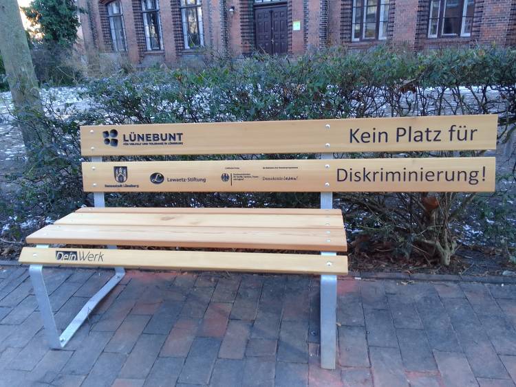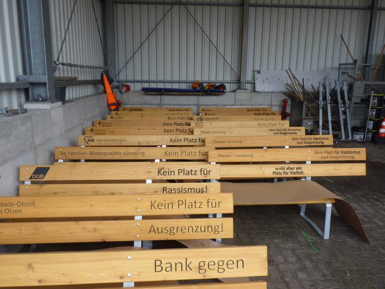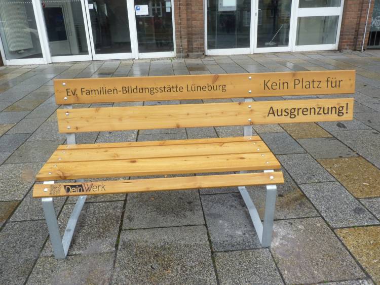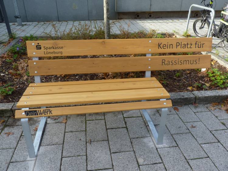 Verschiedene Organisationen, Unternehmen sowie Privatpersonen haben diese Aktion unterstützt. Die eindeutige Aussage bringt, durch das Fehlen einer Sitzfläche, zum Ausdruck, dass in Lüneburg und Landkreis kein Platz für Ausgrenzung und Rassismus vorhanden ist. Es wird damit für Vielfalt und Toleranz geworben.