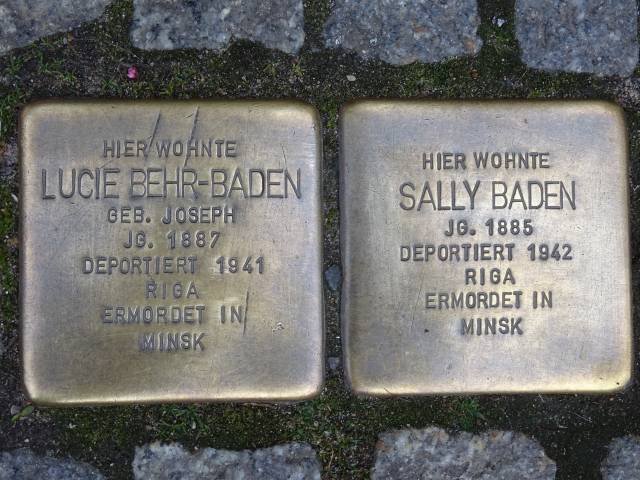 Am 31.03.2005 wurden zwei Stolpersteine für das jüdische Ehepaar Lucie Behr-Baden und Sally Baden in der Bardowicker Straße 12 verlegt.