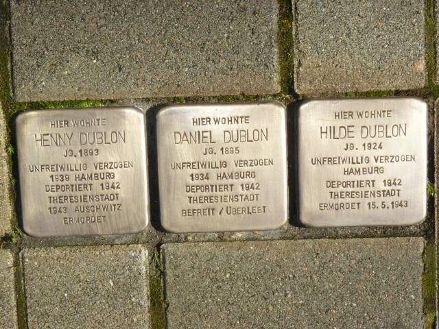 Am 08.03.2014 wurden drei Stolpersteine für die jüdische Familie Henny, Daniel und Hilde Dublon im Wilschenbrucher Weg 20 verlegt.