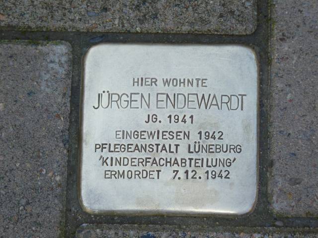 Am 22.11.2019 wurde ein Stolperstein für Jürgen Endewardt in der Georg-Böhm-Straße 4 verlegt.