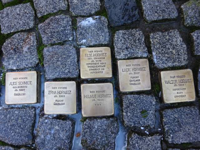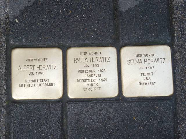Am 19.02.2013 wurden drei Stolpersteine für die Kinder Paula, Selma und Albert der jüdischen Familie Horwitz, Auf dem Kauf 13 verlegt.