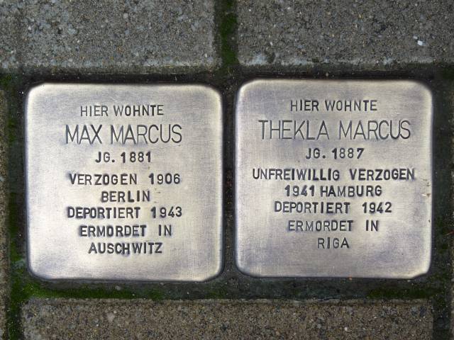 geb. 1881 in Lüneburg, war der älteste Sohn der jüdischen Familie Marcus. Er zog 1906 nach Berlin. Von dort wurde er 1943 in das Konzentrationslager Auschwitz deportiert und ermordet. Thekla Marcus,