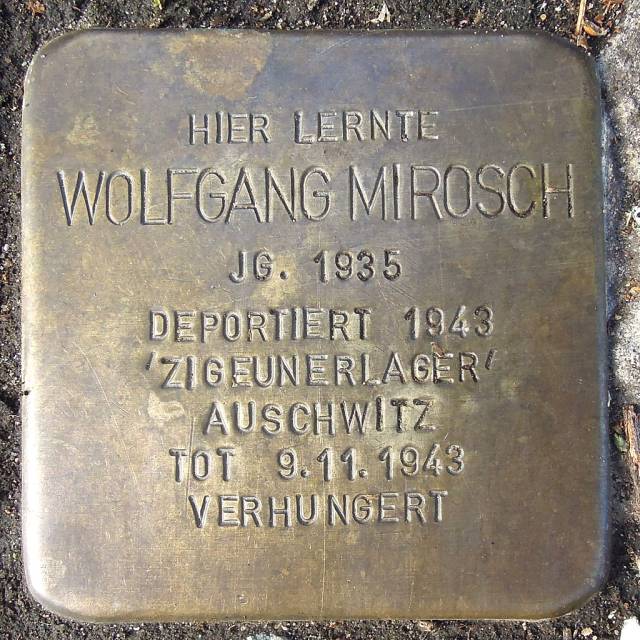 Am 10.10.2012 wurde ein Stolperstein für Wolfgang Mirosch in Adendorf, Dorfstraße 58 vor der Grundschule verlegt.
