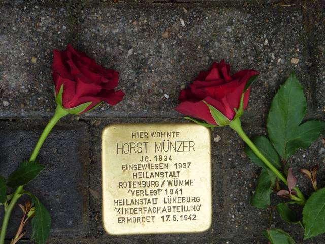 Am 27.10.2023 wurde ein Stolperstein für Horst Münzer (Opfer der „Euthanasie“) Hinter der Sülzmauer 2 verlegt.