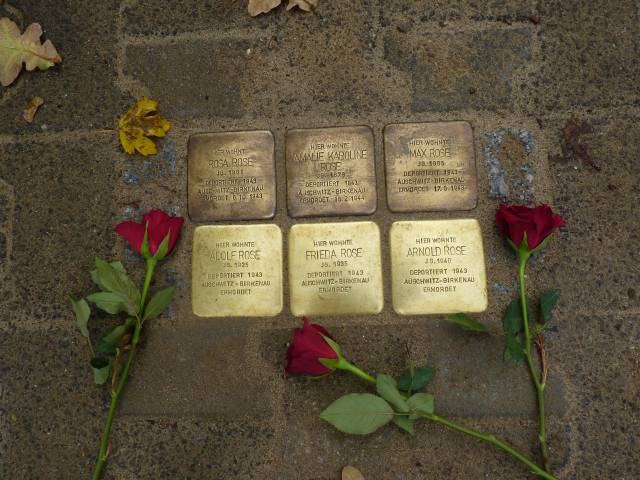 Max Rose, geb. 1905, ein Sohn von Amalie Rose kam 1934 nach Lüneburg. Er war Musiker. Rosa Rose, geb. 1901, war die älteste Tochter. Sie kam 1934 mit ihrem Lebenspartner Georg Altenburg und den Kindern Adolf und Reinhold nach Lüneburg. Hier wurden die Kinder Frieda und Arnold geboren. Alle Mitglieder der Sinti-Familie Rose wurden über Hamburg ins KZ Auschwitz-Birkenau deportiert und ermordet.
