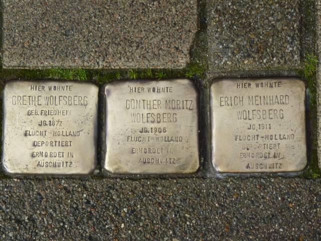 Am 31.03.2005 wurden drei Stolpersteine für die jüdische Familie Grethe, Günther und Erich Wolfsberg in der Schießgrabenstraße 3 verlegt.