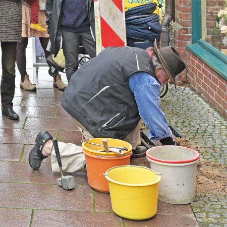 Am 08.03.2014 wurden zwei Stolpersteine für das jüdische Ehepaar Paula und Siegmund Less Am Sande 4 / Ecke Rote Straße verlegt.
